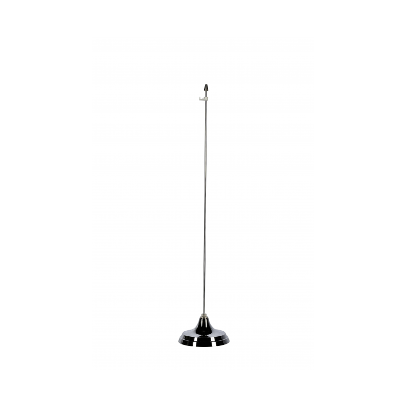 La basetta è in ottone cromato lucido, ha un diametro di 9 cm e l'astina ha un altezza di 60 cm completata da pomolo e gancetto.