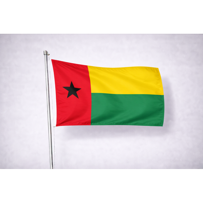 La bandiera ufficiale della Guinea-Bissau combina i colori panafricani con una stella nera simbolo di unità africana. Una bandiera ricca di storia, perfetta per uso espositivo, culturale o decorativo.
