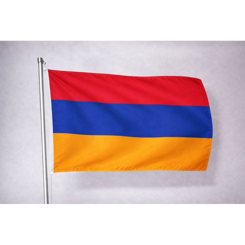 Bandiera dell'Armenia in poliestere nautico professionale 110 gr/mq confezionata con doppia cucitura perimetrale, guina e corda. Moschettone in metallo su richiesta.