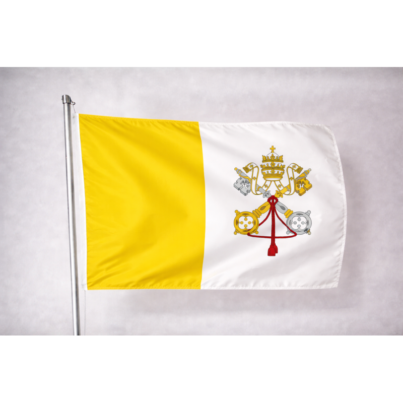 La bandiera della Città del Vaticano in vendita sul nostro sito è realizzata in poliestere nautico professionale da 110 gr/mq confezionata con doppia cucitura perimetrale, guina e corda. Moschettone in metallo su richiesta.