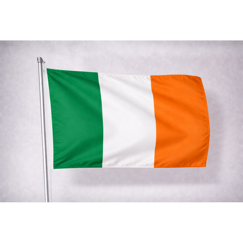 La bandiera irlandese presenta tre colori molto simili a quelli italiani e della Costa d’avorio. Il significato vuole rappresentare l’unione delle diverse comunità d’Irlanda. Secondo la versione più comune il verde simboleggerebbe la comunità cattolica, l’arancione quella protestante e il bianco la pace tra le due. Nei colori è racchiusa anche la storia del Paese: la fascia di colore verde rappresenterebbe l’antica Irlanda, detta l’Isola dello Smeraldo, la fascia arancione invece, il gruppo protestante che sostenne Guglielmo d’Orange nella Guerra dei Due Re. Denominata ufficialmente Éire, in lingua irlandese, con la Costituzione del 1937, la Repubblica fa parte dell’Unione Europea dal 1973. Confina a Nord con il Regno Unito che detiene ancora il controllo di una parte dell’isola. Nel 1949 il parlamento irlandese, approvando il Republic of Ireland Act, dichiarò l'Irlanda una repubblica e sancì la definitiva uscita dal Commonwealth britannico. Attualmente lo stato è tra i primi posti per lo sviluppo economico, la libertà di stampa, l’istruzione e la democrazia. La capitale Dublino è situata al centro della costa orientale. Altre città importanti sono Sligo, Galway, Limerick, Waterford e Cork.