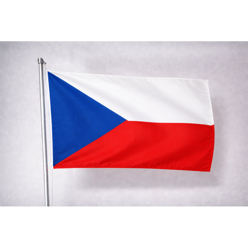 Bandiera della Repubblica Ceca in poliestere nautico professionale 110 gr/mq confezionata con doppia cucitura perimetrale, guina e corda. Moschettone in metallo su richiesta.
