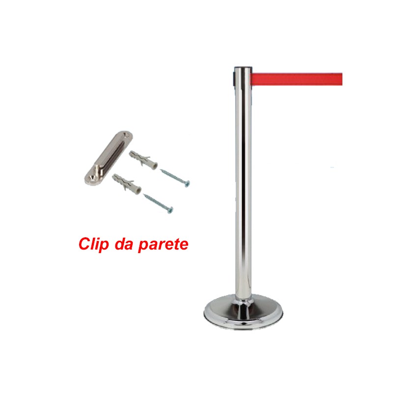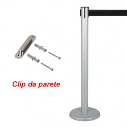 Piantana con colonnina a nastro segna percorso completa di clip da parete.