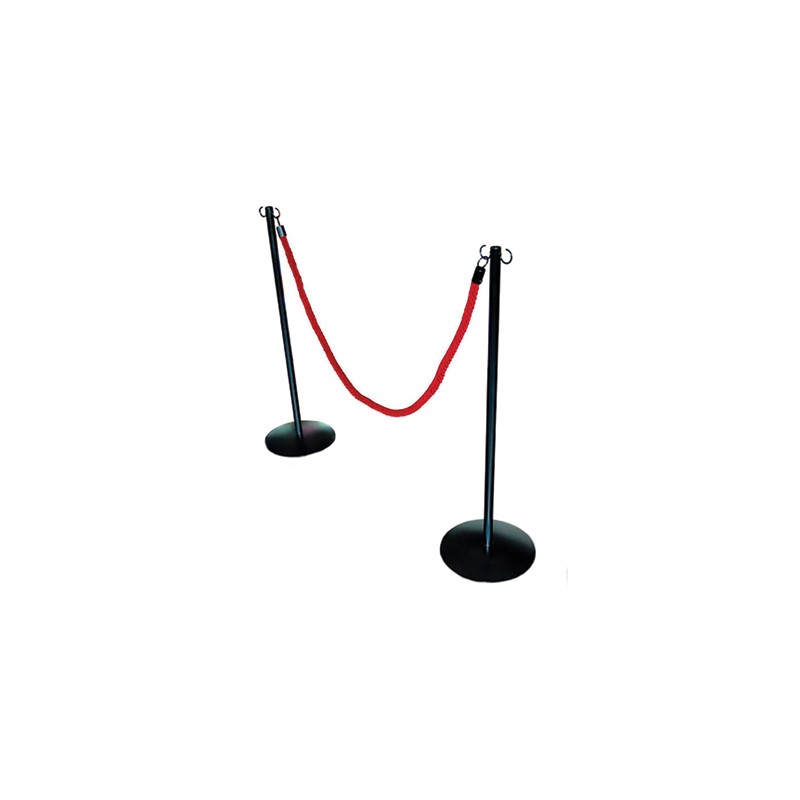 Coppia di piantane di delimitazione modello Economy in acciaio verniciato nero completo di cordone bordeaux Ø 25 mm.